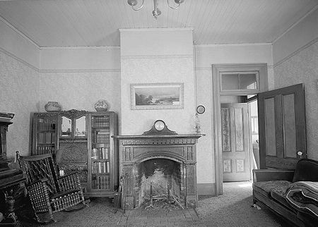 James Stuart Cain residence living room fireplace July 1962